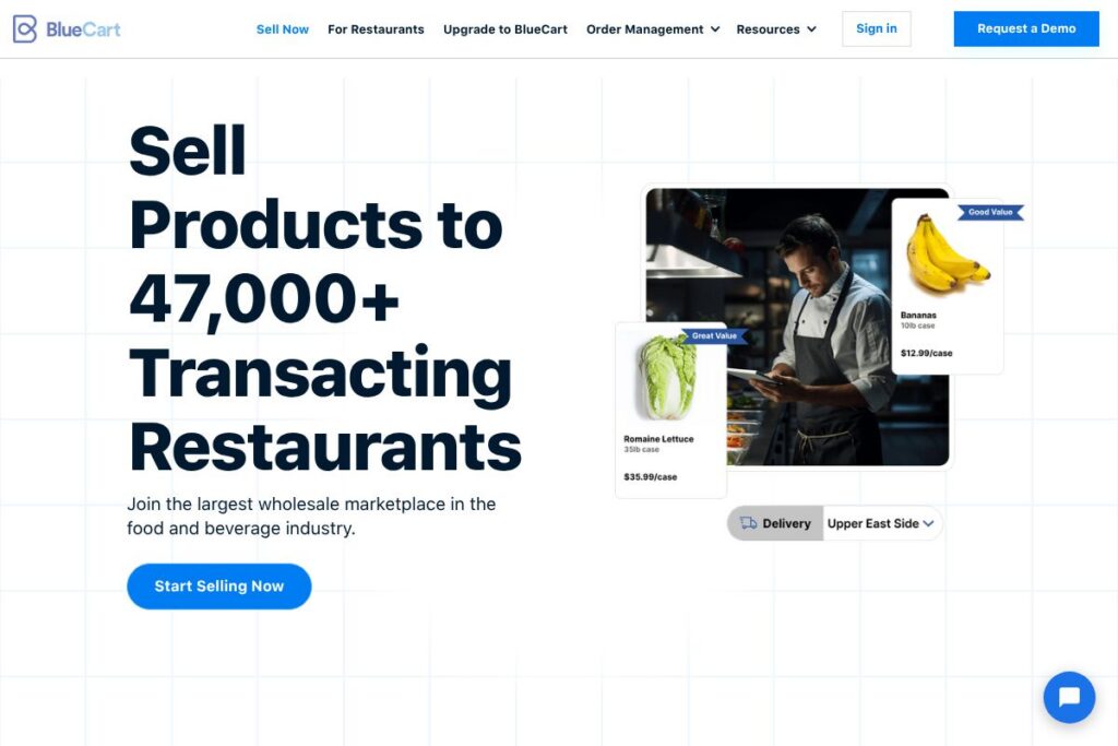 BlueCart is used by food and beverage manufacturers, distributors, and wholesalers that want to sell directly to restaurants, caterers, and other foodservice buyers. It is designed for suppliers that need a marketplace to reach active buyers without building a separate sales and fulfillment stack.