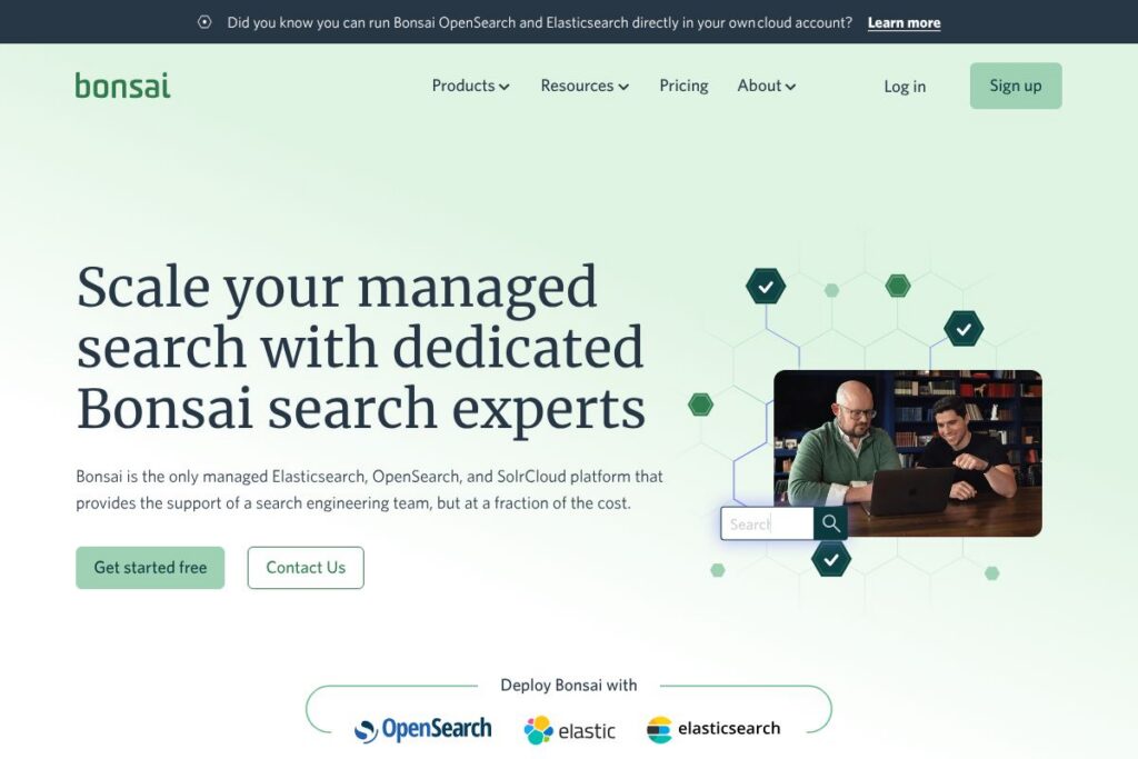 Bonsai competes with larger cloud providers and hosted search vendors while focusing on managed operations and human support. Compared with Elastic Cloud (Elastic’s hosted offering) Bonsai emphasizes hands-on cluster management and advisory playbooks rather than a self-service control plane; compared with Amazon OpenSearch Service Bonsai offers a single-vendor managed experience that centers on Elasticsearch/OpenSearch expertise; compared with Algolia Bonsai supports the Elasticsearch/OpenSearch APIs and is therefore a closer fit when teams require direct compatibility with existing ES tooling. All of this makes Bonsai useful for engineering teams that want production-grade search without building internal SRE expertise.