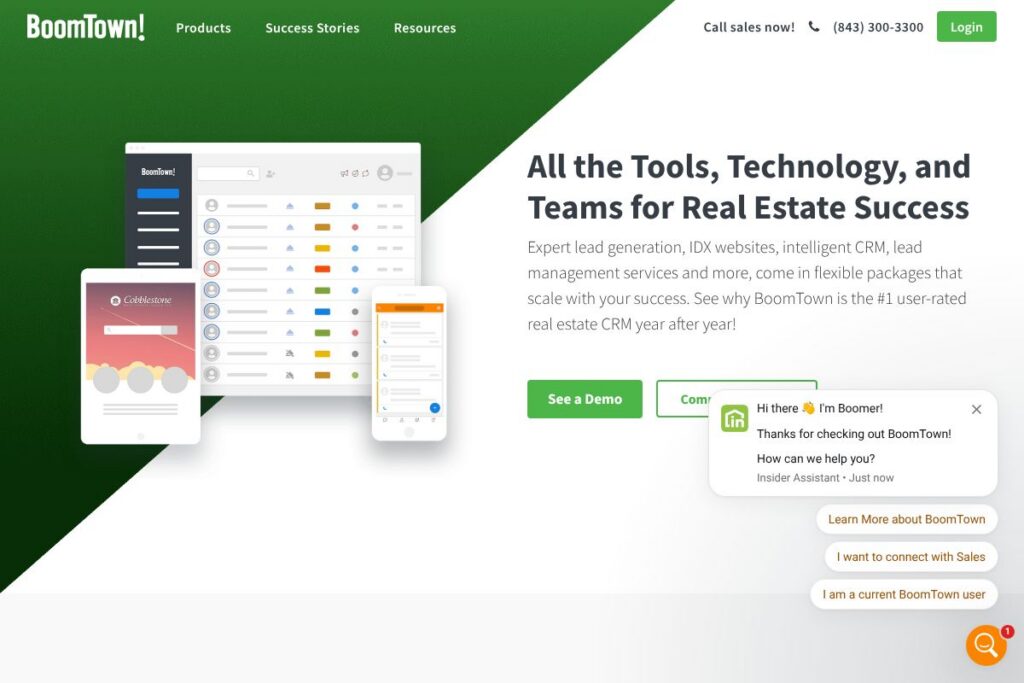 BoomTown is a real estate marketing platform that combines lead generation, IDX-powered websites, a contact management CRM, and managed lead services into a single platform for brokerages and teams. It focuses on capturing online traffic, routing leads quickly, and providing a managed follow-up option called Success Assurance that keeps leads engaged until they convert.