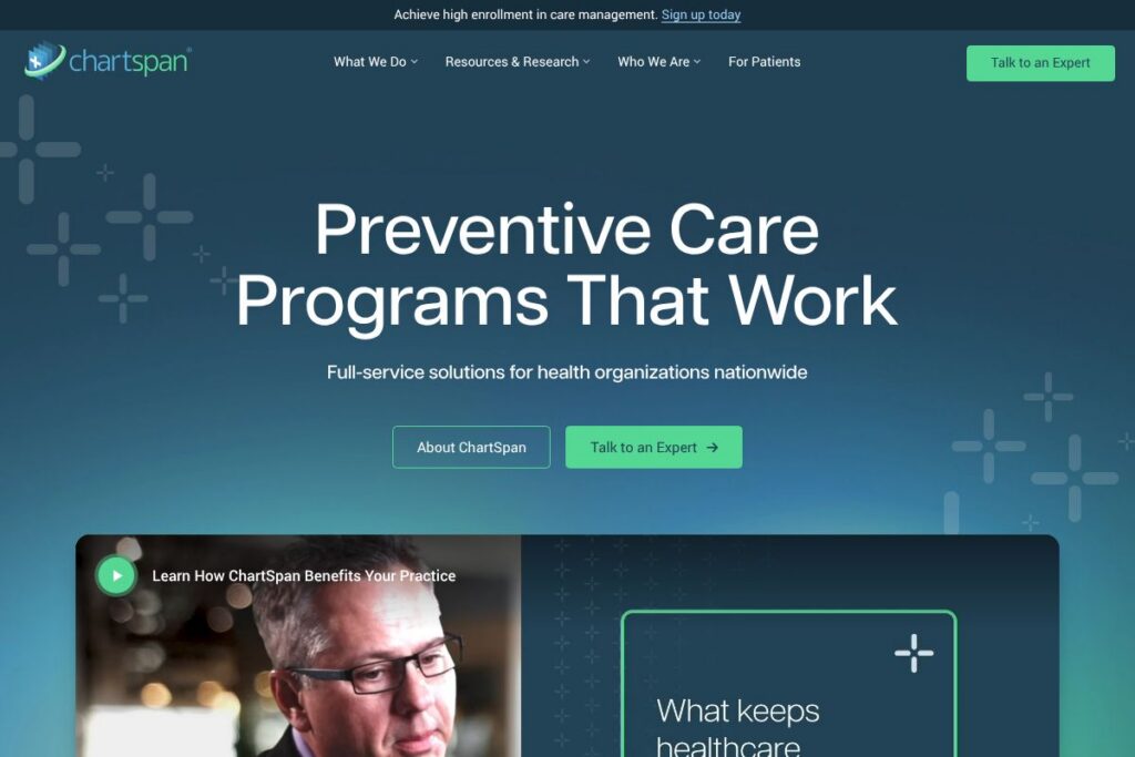 ChartSpan’s platform and service model are organized around continuous patient engagement, operational enrollment, documentation for billing, and care coordination. Core capabilities include dedicated care teams, enrollment management, outreach workflows, claims and reimbursement support, and patient communication channels. The company markets these services as a way to reduce staff burden while increasing patient contact and quality metrics.