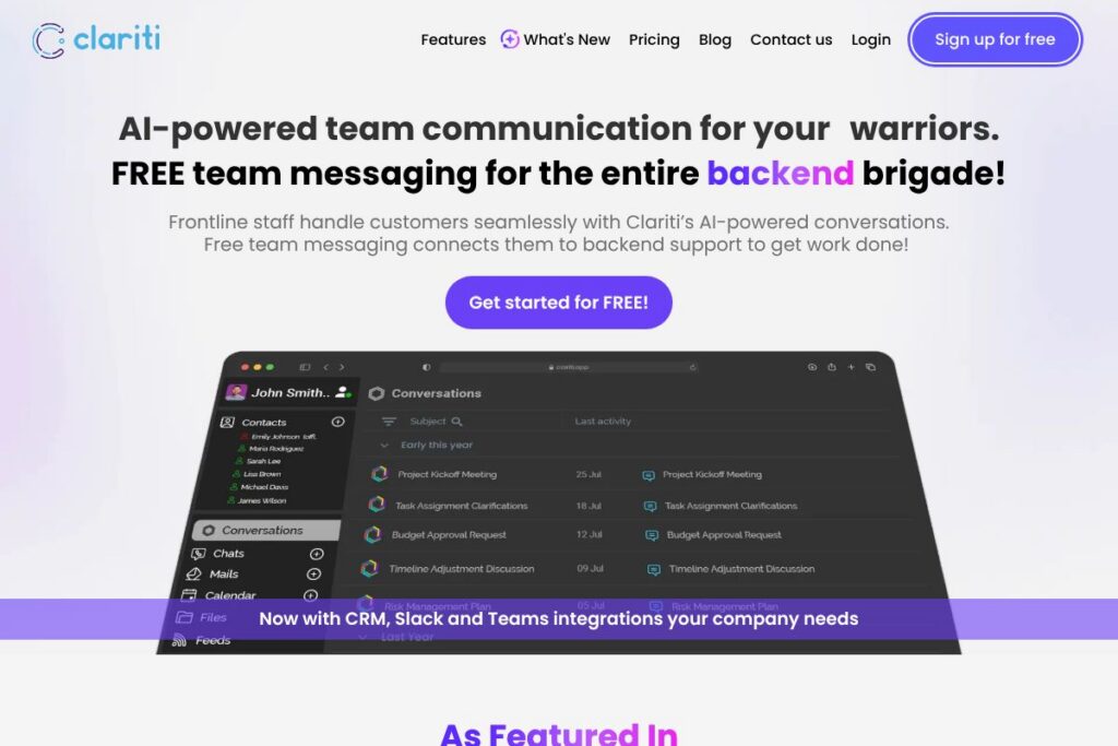 - Frontline-friendly free tier: Clariti promotes free team messaging for frontline staff and offers targeted lifetime free premium opportunities, which can lower deployment cost for customer-facing teams.