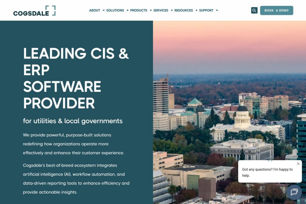 Cogsdale is a software provider that offers integrated ERP and customer information systems for utilities and local governments. Its platform combines utility billing, financial management, meter data support, asset management, and customer service tools in a cloud-hosted architecture designed for regulatory and operational requirements.