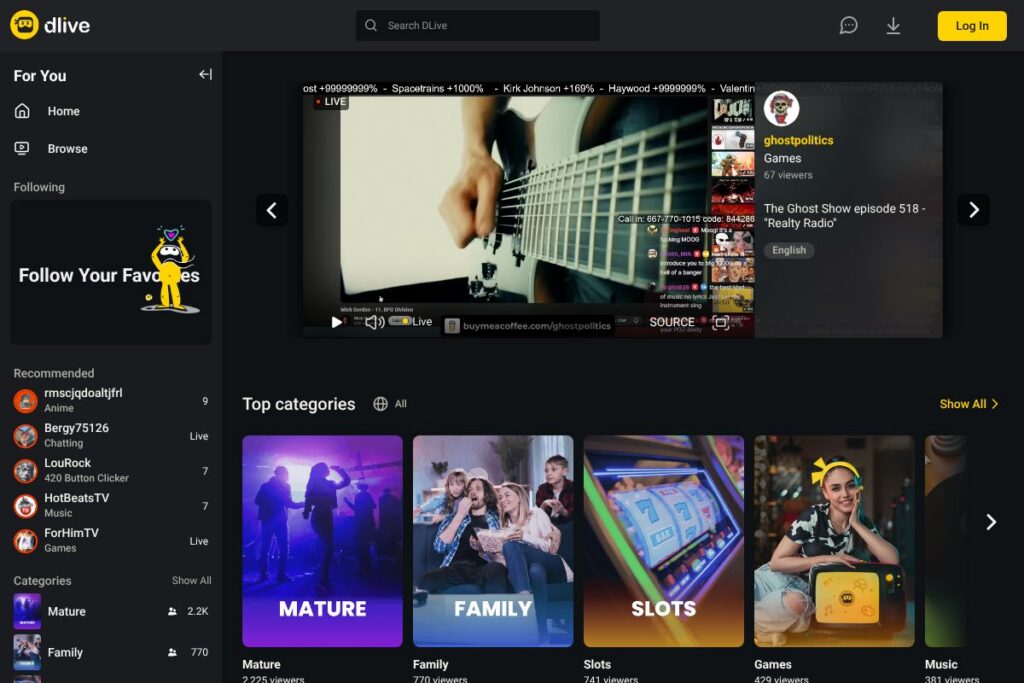 - Creator-focused monetization: DLive offers direct tipping and subscription mechanics that keep the relationship between creators and supporters explicit and visible. This helps creators monetize streams without relying only on ads.