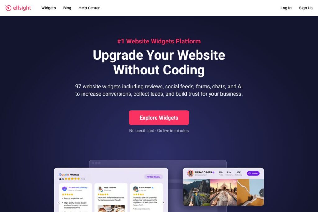 Elfsight is used to add embeddable widgets to websites without coding. Common purposes include showing reviews, embedding social feeds, capturing leads with forms, and adding chat or popups to increase engagement.