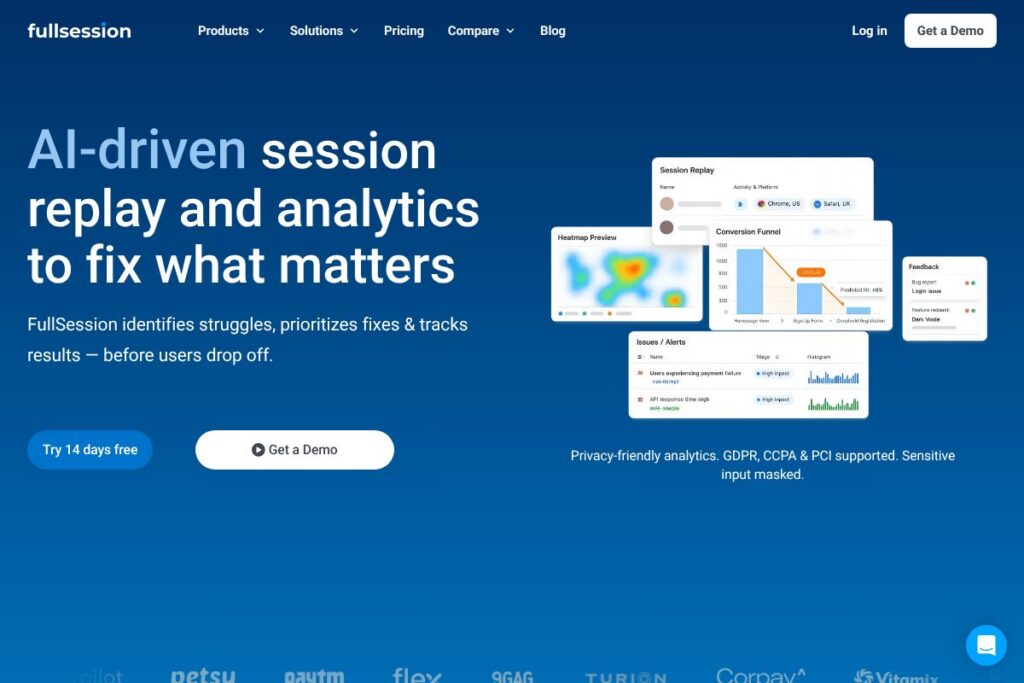 FullSession is a session replay and analytics platform that helps teams find where users struggle, prioritize fixes using AI, and measure whether changes improve key outcomes. It combines visual replay, heatmaps, funnel analysis, error linking, and in-app feedback to provide both qualitative evidence and quantitative context for conversion and retention issues.