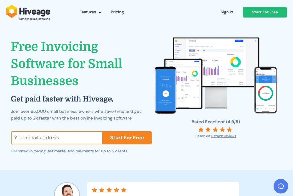 Hiveage delivers a focused, user-friendly invoicing experience that reduces the time it takes to bill clients and collect payments. Its strengths are clean invoice templates, flexible recurring billing, multi-currency support, and a freemium entry point that suits freelancers and very small businesses.
