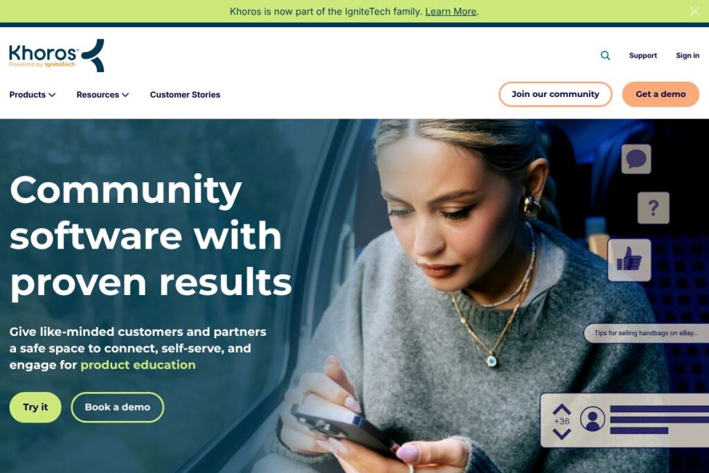 Khoros is a customer engagement platform that combines community forums, digital service automation, and social media management into a single product set for enterprises. Organizations use Khoros to host branded community sites, reduce support costs through self-service, and coordinate social campaigns across global teams.