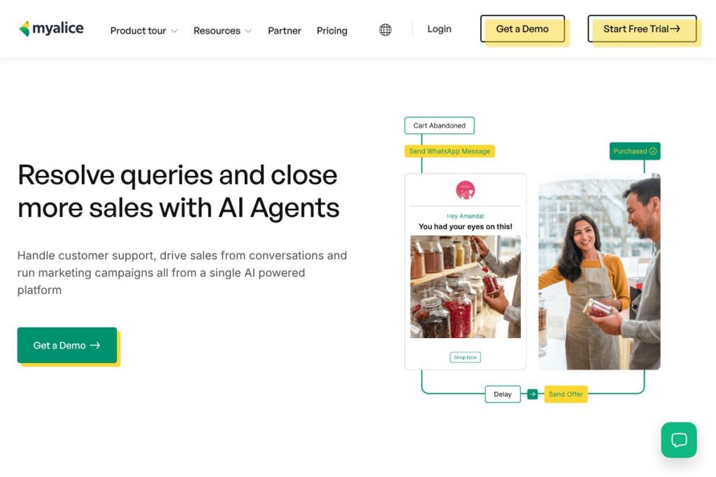 MyAlice is used to convert website visitors into buyers through timely, personalized messaging and to provide faster, context-rich post-sale support. Common workflows include cart abandonment recovery, order status notifications, returns handling, and targeted cross-sell messaging after purchase.