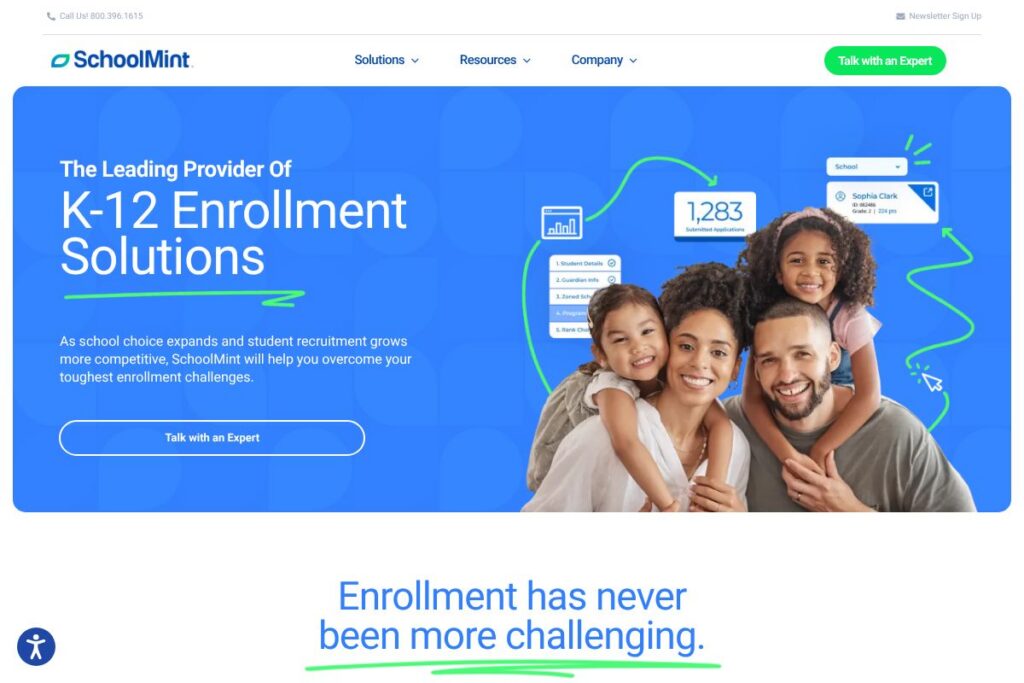 SchoolMint is a suite of K-12 enrollment solutions designed to manage the full family journey from outreach to registration. The platform combines recruitment CRM, digital advertising tools, application and lottery processing, registration, and analytics so districts and schools can run coordinated enrollment campaigns and manage demand in a single system. Learn more about SchoolMint’s capabilities on the official solutions overview.