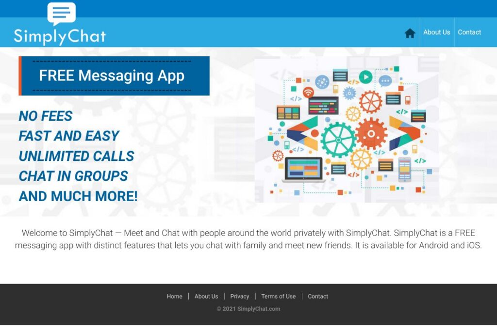 SimplyChat follows a free usage model with no public pricing tiers listed on a dedicated pricing page. The app’s messaging and calling features are presented as available without fees for standard use.