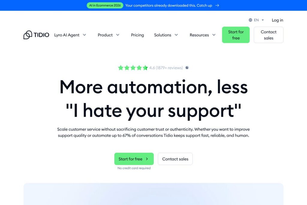 All of this makes Tidio especially well suited for e-commerce stores, SaaS companies, and small-to-medium support teams that need to increase capacity without sacrificing trust or response quality. Its resolution-rate guarantee and the ability to train Lyro on internal knowledge sources make it appealing for teams that need high accuracy from automation.
